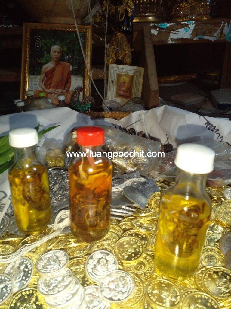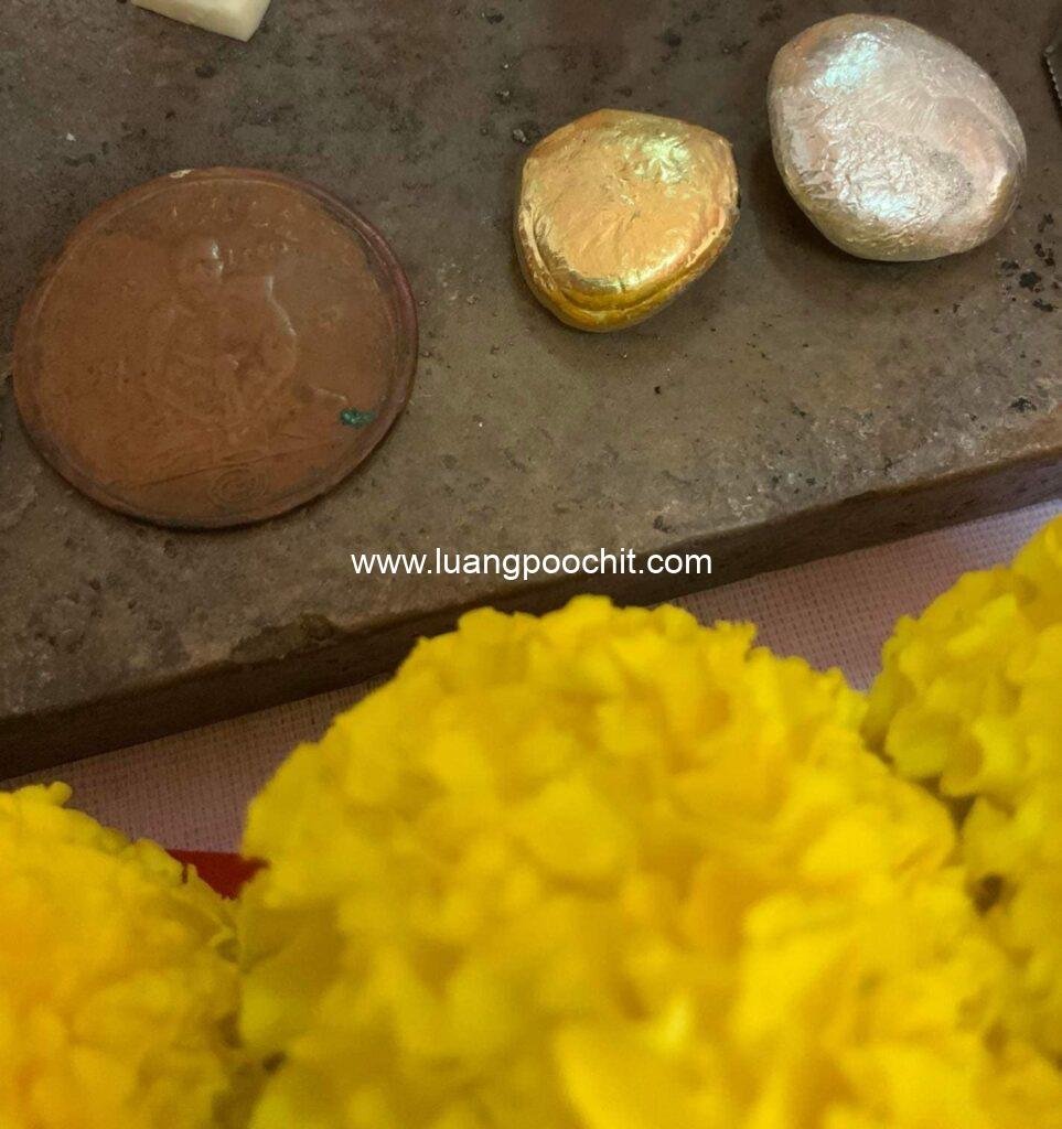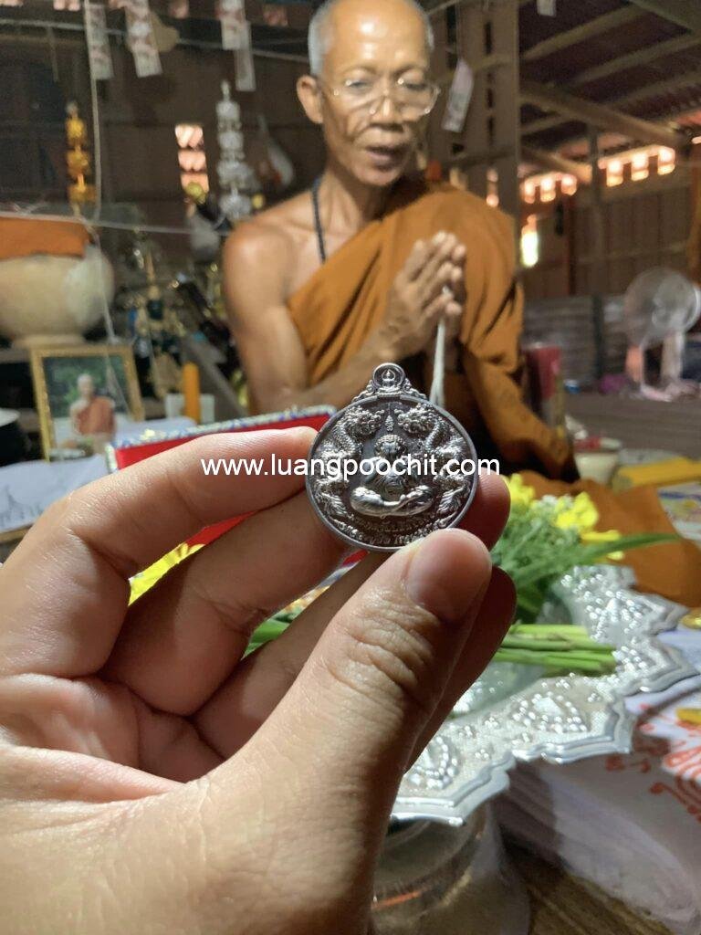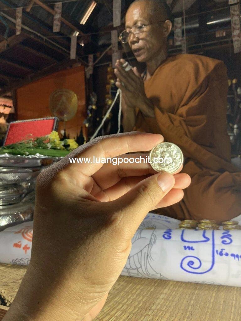 เหรียญพระภควัมบดีพิชิตชัย (พระปิดตามังกรคู่มหาลาภ) หลวงปู่ชิต โรจนวังโส ไตรมาส 2565 ที่มาของการจัดสร้างวัตถุมงรุ่นนี้ เนื่องจากว่าการจัดทำวัตถุมงคลของหลวงปู่ ซึ่งเริ่มขึ้นตั้งแต่ปี 2558 แต่ว่ายังไม่มีความชัดเจนนัก โดยหลวงปู่ทำเอง เป็นว่านบ้าง เป็นตะกรุดบ้าง ซึ่งหลวงปู่จะเน้นมวลสารที่ให้ทางโชคลาภ เมตตา ค้าขาย เป็นหลัก จวบจนถึงปีนี้ มีลูกศิษย์ลูกหาจำนวนมากขึ้น หลวงปู่จัดทำเอง ปั้นมือหามวลสาร ก็ค่อยข้างจะยาก หลวงปู่จึงมีดำริ ให้จัดสร้างเหรียญขึ้นมา เพื่อให้ไว้แก่ลูกศิษย์ผู่ที่เคารพศรัทธาในองค์หลวงปู่ เพื่อเป็นเครื่องเตือนสติให้ตั้งอยู่ในความดีละเว้นความชั่ว เพื่อเป็นขวัญกำลังใจในหน้าที่การงาน ไปไหนมาไหนให้เดินทางอย่างมีสติ ให้เดินทางปลอดภัยดี จึงเป็นการก่อกำเนิดเหรียญรุ่นแรกนี้ขึ้น ทั้งนี้หลวงปู่ได้มอบชนวนมวลสารในการสร้างเหรียญ มีก้อนเงิน ก้อนทองคำ แท่งชนวนมวลสาร และเหรียญพระเกจิเก่าที่หลวงปู่เก็บไว้ ซึ่งมีสภาพสึกหรอมาก ให้มาหลอมเป็นมวลสารสำคัญที่จะสร้างเหรียญรุ่นแรกนี้ **เหรียญรุ่นแรก การออกแบบด้านหน้าเหรียญนั้นได้เอาแบบเหรียญพระเกจิเก่า ที่หลวงปู่มอบมา ให้เป็นชนวนมวลสารมาเป็นต้นแบบของเหรียญ ซึ่งรูปแบบเป็นรูปนั่งเต็มองค์ มีอักขระพระคาถายันต์ มะ โม พุท ธา ยะ และ พระคาถายันต์ นะมะนะอะ นอกอนะกะ กอออนออะ นะอะกะอัง ตามแบบเค้าโครงเหรียญพระเกจิเก่า ส่วนด้านหลังเป็นรูปพระงานเข้า ล้อมรอบด้วยพระคาถายันต์พญาไก่เถื่อนของสมเด็จพระสังฆราชสุก ไก่เถื่อน พระคาถายันต์ นะ มะ พะ ทะ และ นะ ชา ลี ติ แล้วมีดอกบัวบานอยู่ด้วย เหรียญพระเกจิเก่าที่หลวงปู่มอบมาให้เป็นชนวนมวลสาร หลวงปู่บอกว่าเหรียญนี้มีพลังมาก เด่นทางเมตตาค้าขาย แคล้วคลาดปลอดภัย ซึ่งสภาพเหรียญนั้นสึกหรอมากภาพเลือนลาง ถ้าเก็บเอาไว้บูชาบารมีของท่านก็จะอยู่เพียงเท่านี้ เพื่อเผยแผ่บารมีให้แผ่ไพศาล ให้ลูกศิษย์ลูกหาได้อาศัยบารมี หลวงปู่จึงได้ขอบารมีทำพิธีพลีมวลสาร นำมาหล่อเป็นชนวนมวลสารให้กับเหรียญรุ่นแรกของหลวงปู่ ซึ่งวัตถุมงคลชุดนี้ จึงจัดได้ว่าเป็นที่สุดยอดของมวลสาร ทั้งก้อนเงิน ก้อนทอง และเหรียญเกจิเก่า จึงถือว่าเป็นเหรียญสองบารมี ทั้งพระเกจิสมัยก่อน และหลวงปู่ชิต **เหรียญพระปิดตามังกรคู่มหาลาภ โดยหลวงปู่ถือเคล็ดว่า ปีนี้ปีเสือ เสือคู่มังกร เสือเป็นเจ้าพยัคฆ์อยู่พากพื้นดิน ส่วนมังกรเป็นเจ้าแห่งท้องฟ้า เจ้าแห่งท้องทะเล ทั้งสองอย่างจะมาเกื้อหนุนกัน ซึ่งเราจะเห็นได้ว่า ในตำราหลักฮวงจุ้ยจีน ก็จะมีเสือขาว มังก