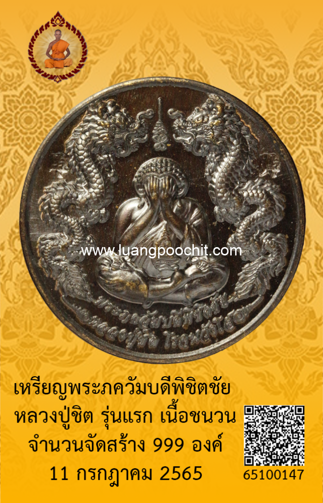 ชื่อพระ : เหรียญพระภควัมบดีพิชิตชัย หลวงปู่ชิต รุ่นแรก เนื้อชนวน วัดบ้านคำระหงษ์ จ.อุบลราชธานี