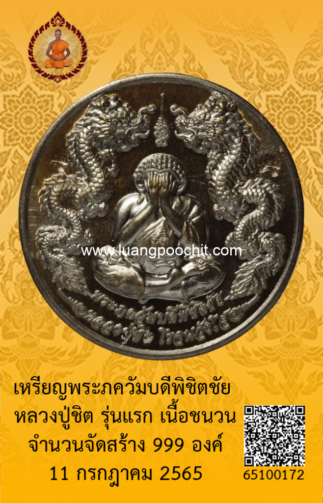ชื่อพระ : เหรียญพระภควัมบดีพิชิตชัย หลวงปู่ชิต รุ่นแรก เนื้อชนวน วัดบ้านคำระหงษ์ จ.อุบลราชธานี