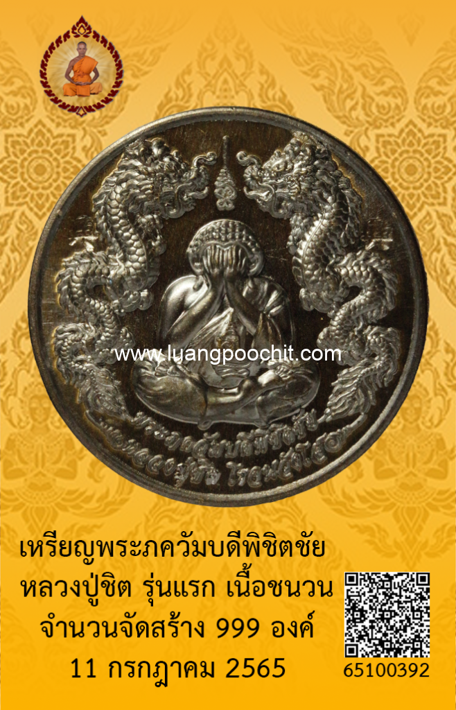 ชื่อพระ : เหรียญพระภควัมบดีพิชิตชัย หลวงปู่ชิต รุ่นแรก เนื้อชนวน วัดบ้านคำระหงษ์ จ.อุบลราชธานี