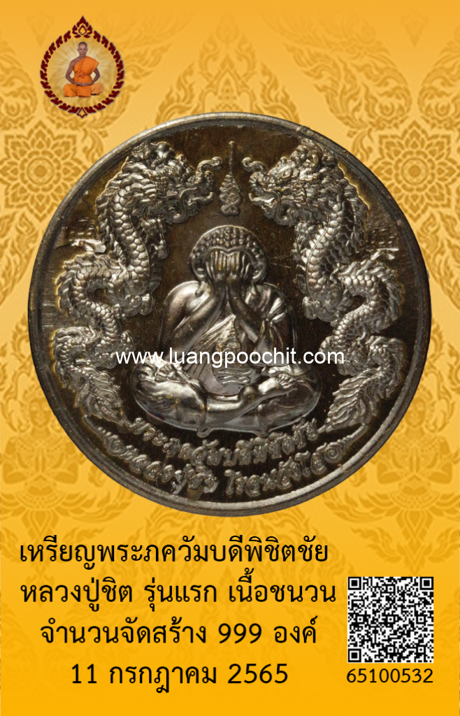 ชื่อพระ : เหรียญพระภควัมบดีพิชิตชัย หลวงปู่ชิต รุ่นแรก เนื้อชนวน วัดบ้านคำระหงษ์ จ.อุบลราชธานี