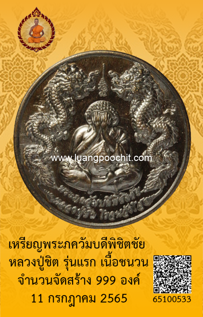 ชื่อพระ : เหรียญพระภควัมบดีพิชิตชัย หลวงปู่ชิต รุ่นแรก เนื้อชนวน วัดบ้านคำระหงษ์ จ.อุบลราชธานี