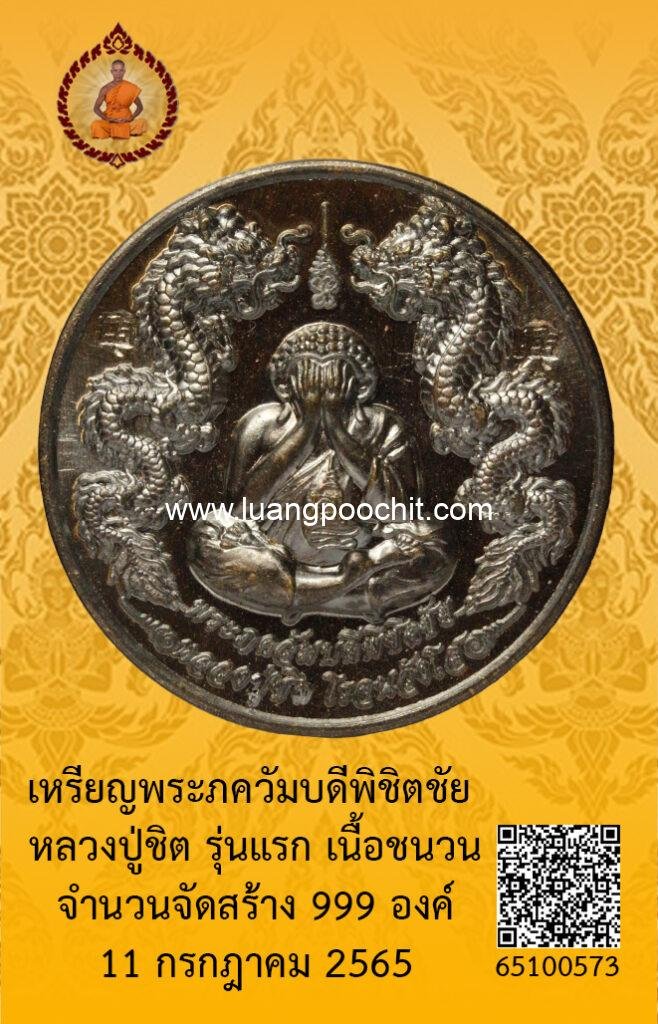 ชื่อพระ : เหรียญพระภควัมบดีพิชิตชัย หลวงปู่ชิต รุ่นแรก เนื้อชนวน วัดบ้านคำระหงษ์ จ.อุบลราชธานี