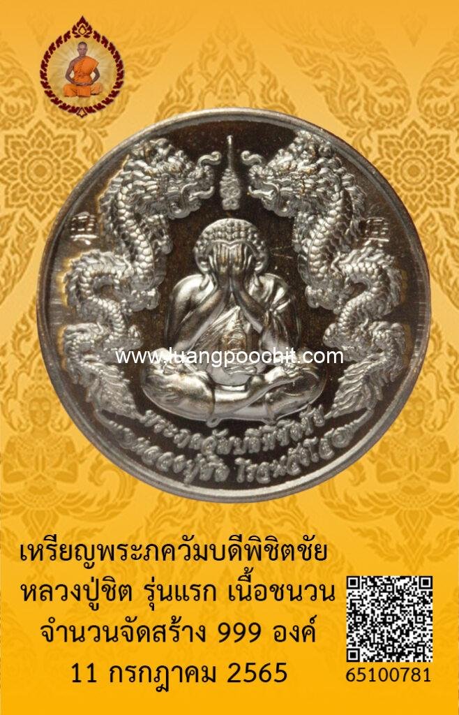 ชื่อพระ : เหรียญพระภควัมบดีพิชิตชัย หลวงปู่ชิต รุ่นแรก เนื้อชนวน วัดบ้านคำระหงษ์ จ.อุบลราชธานี