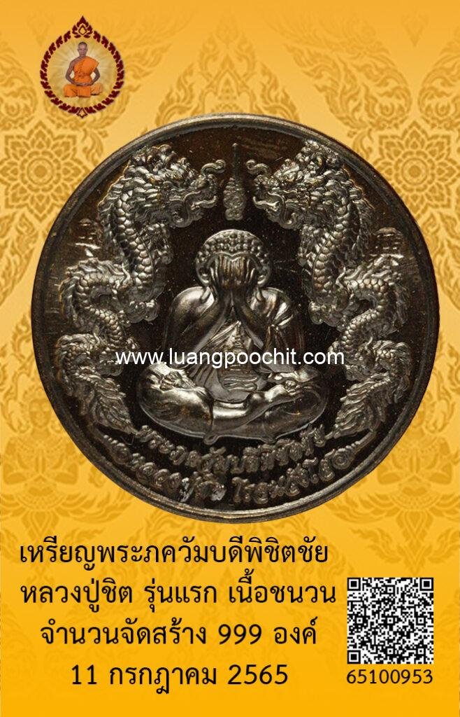 ชื่อพระ : เหรียญพระภควัมบดีพิชิตชัย หลวงปู่ชิต รุ่นแรก เนื้อชนวน วัดบ้านคำระหงษ์ จ.อุบลราชธานี