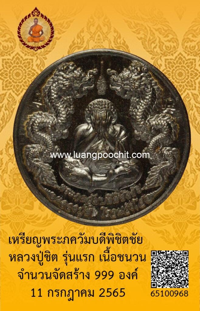 ชื่อพระ : เหรียญพระภควัมบดีพิชิตชัย หลวงปู่ชิต รุ่นแรก เนื้อชนวน วัดบ้านคำระหงษ์ จ.อุบลราชธานี