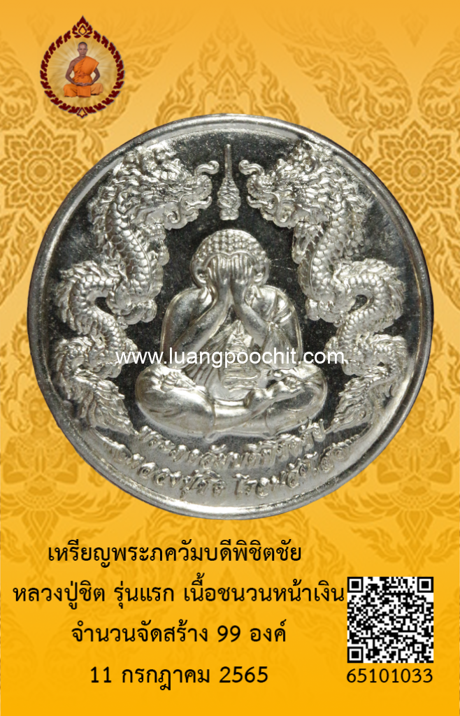 ชื่อพระ : เหรียญพระภควัมบดีพิชิตชัย หลวงปู่ชิต รุ่นแรก เนื้อชนวนหน้าเงิน วัดบ้านคำระหงษ์ จ.อุบลราชธานี