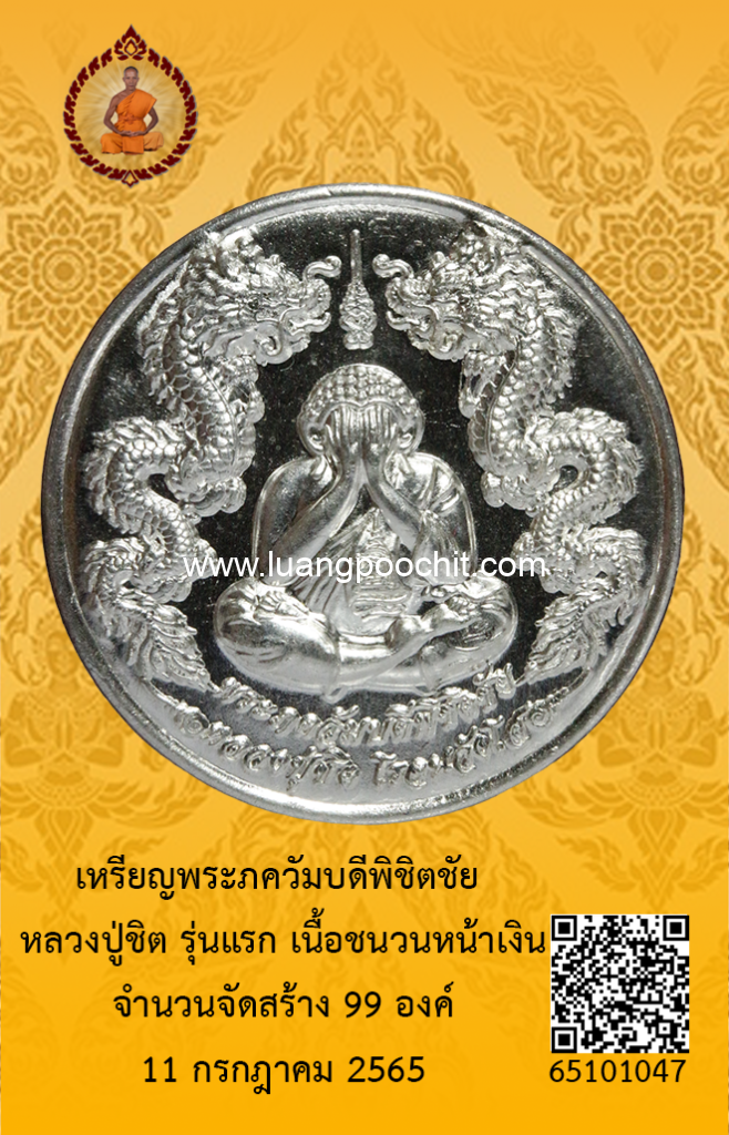 ชื่อพระ : เหรียญพระภควัมบดีพิชิตชัย หลวงปู่ชิต รุ่นแรก เนื้อชนวนหน้าเงิน วัดบ้านคำระหงษ์ จ.อุบลราชธานี