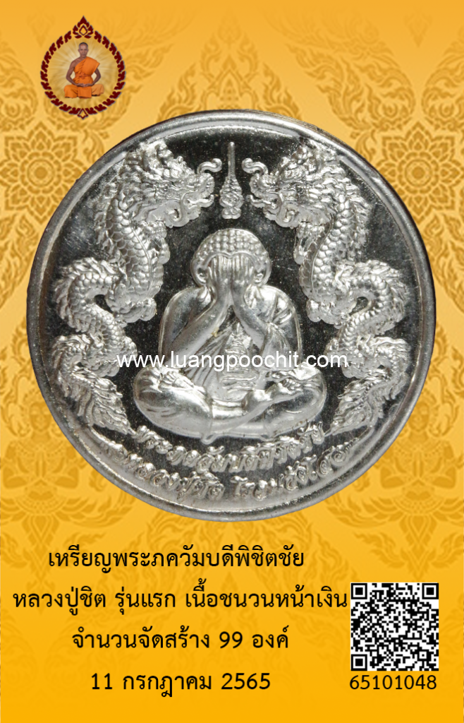 ชื่อพระ : เหรียญพระภควัมบดีพิชิตชัย หลวงปู่ชิต รุ่นแรก เนื้อชนวนหน้าเงิน วัดบ้านคำระหงษ์ จ.อุบลราชธานี
