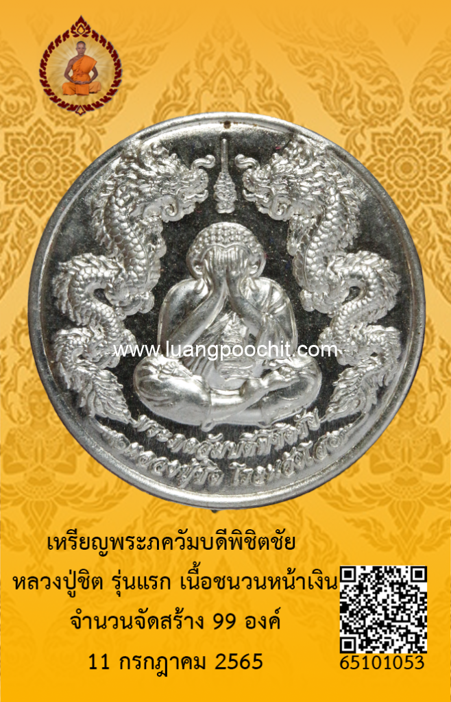 ชื่อพระ : เหรียญพระภควัมบดีพิชิตชัย หลวงปู่ชิต รุ่นแรก เนื้อชนวนหน้าเงิน วัดบ้านคำระหงษ์ จ.อุบลราชธานี