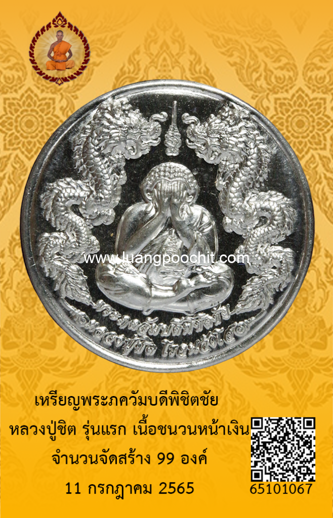 ชื่อพระ : เหรียญพระภควัมบดีพิชิตชัย หลวงปู่ชิต รุ่นแรก เนื้อชนวนหน้าเงิน วัดบ้านคำระหงษ์ จ.อุบลราชธานี