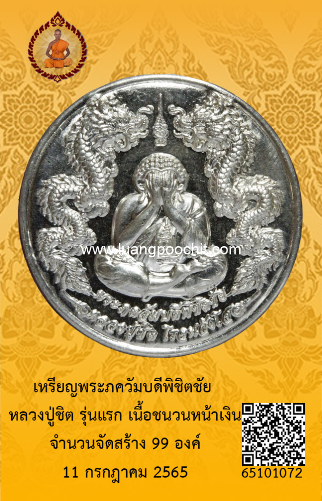 ชื่อพระ : เหรียญพระภควัมบดีพิชิตชัย หลวงปู่ชิต รุ่นแรก เนื้อชนวนหน้าเงิน วัดบ้านคำระหงษ์ จ.อุบลราชธานี