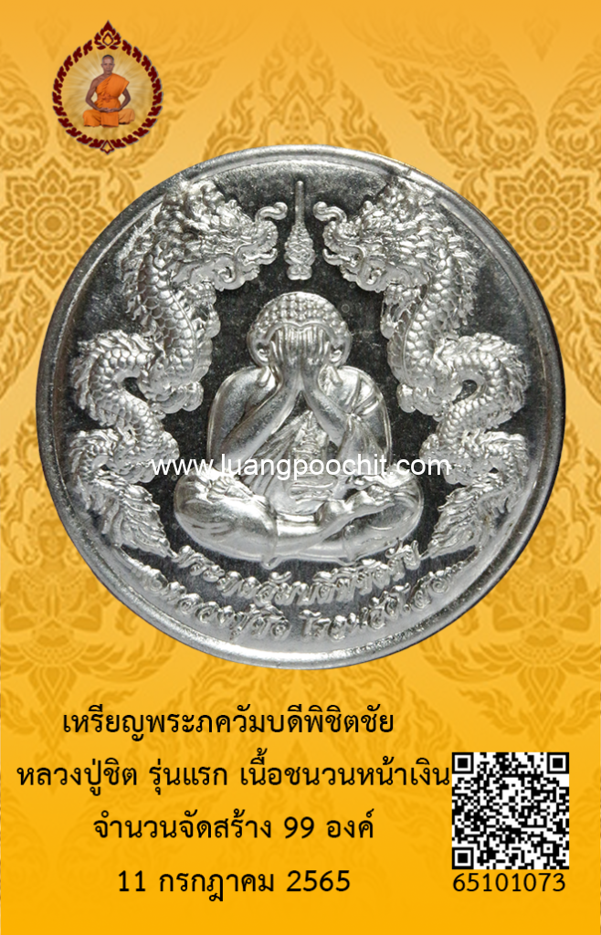 ชื่อพระ : เหรียญพระภควัมบดีพิชิตชัย หลวงปู่ชิต รุ่นแรก เนื้อชนวนหน้าเงิน วัดบ้านคำระหงษ์ จ.อุบลราชธานี