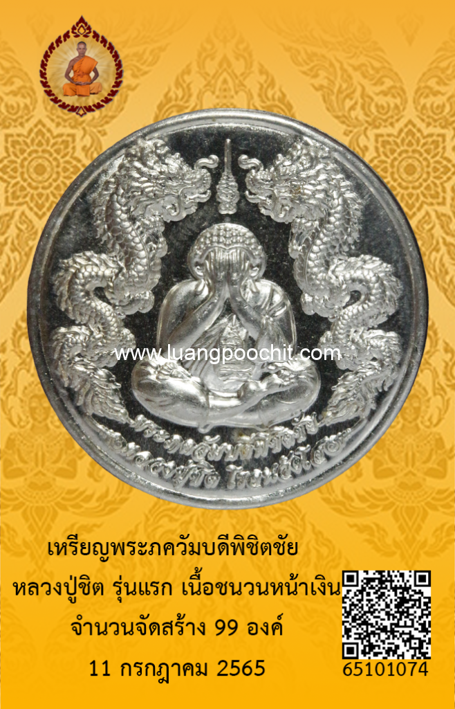 ชื่อพระ : เหรียญพระภควัมบดีพิชิตชัย หลวงปู่ชิต รุ่นแรก เนื้อชนวนหน้าเงิน วัดบ้านคำระหงษ์ จ.อุบลราชธานี