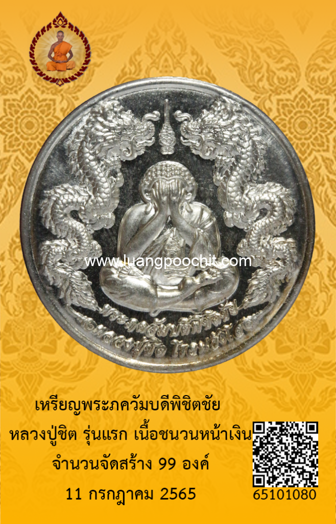 ชื่อพระ : เหรียญพระภควัมบดีพิชิตชัย หลวงปู่ชิต รุ่นแรก เนื้อชนวนหน้าเงิน วัดบ้านคำระหงษ์ จ.อุบลราชธานี