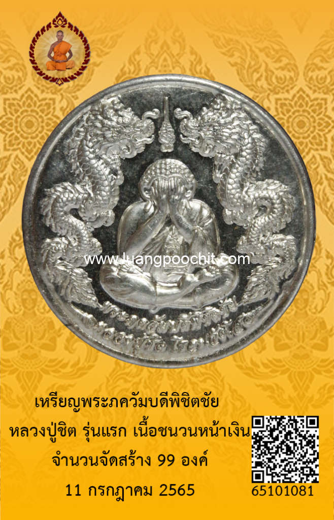 ชื่อพระ : เหรียญพระภควัมบดีพิชิตชัย หลวงปู่ชิต รุ่นแรก เนื้อชนวนหน้าเงิน วัดบ้านคำระหงษ์ จ.อุบลราชธานี