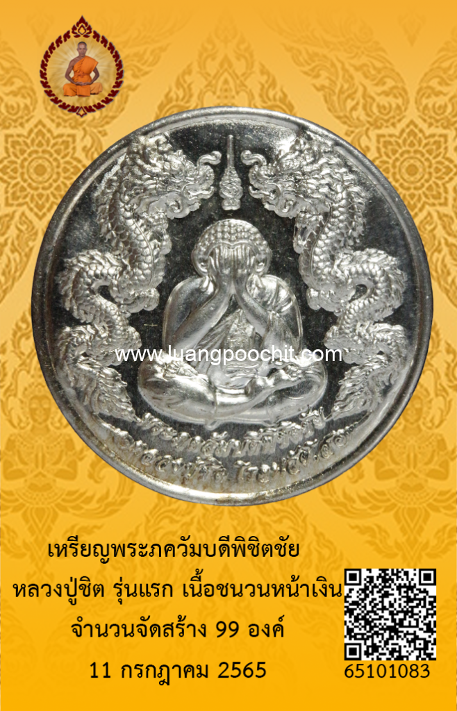 ชื่อพระ : เหรียญพระภควัมบดีพิชิตชัย หลวงปู่ชิต รุ่นแรก เนื้อชนวนหน้าเงิน วัดบ้านคำระหงษ์ จ.อุบลราชธานี