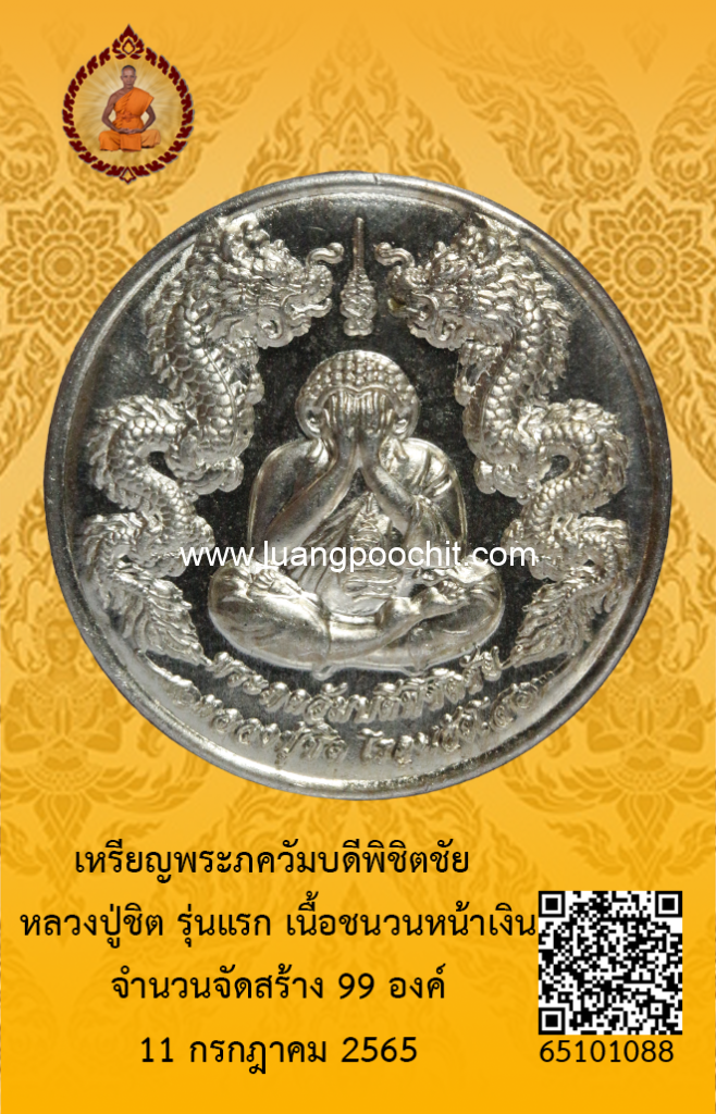 ชื่อพระ : เหรียญพระภควัมบดีพิชิตชัย หลวงปู่ชิต รุ่นแรก เนื้อชนวนหน้าเงิน วัดบ้านคำระหงษ์ จ.อุบลราชธานี