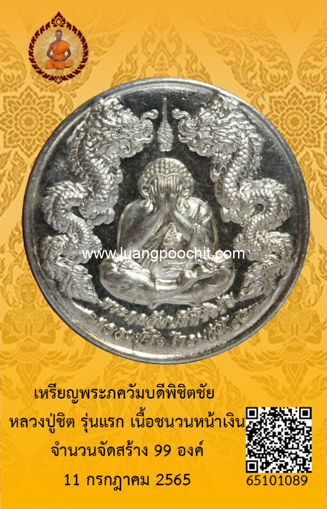 ชื่อพระ : เหรียญพระภควัมบดีพิชิตชัย หลวงปู่ชิต รุ่นแรก เนื้อชนวนหน้าเงิน วัดบ้านคำระหงษ์ จ.อุบลราชธานี