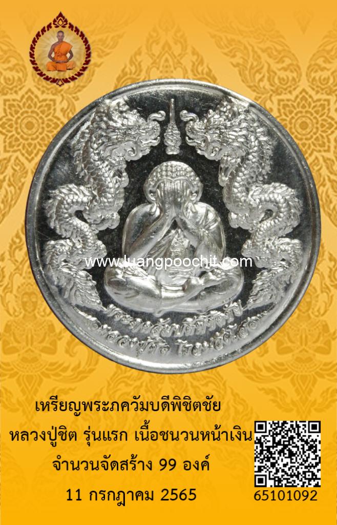 ชื่อพระ : เหรียญพระภควัมบดีพิชิตชัย หลวงปู่ชิต รุ่นแรก เนื้อชนวนหน้าเงิน วัดบ้านคำระหงษ์ จ.อุบลราชธานี