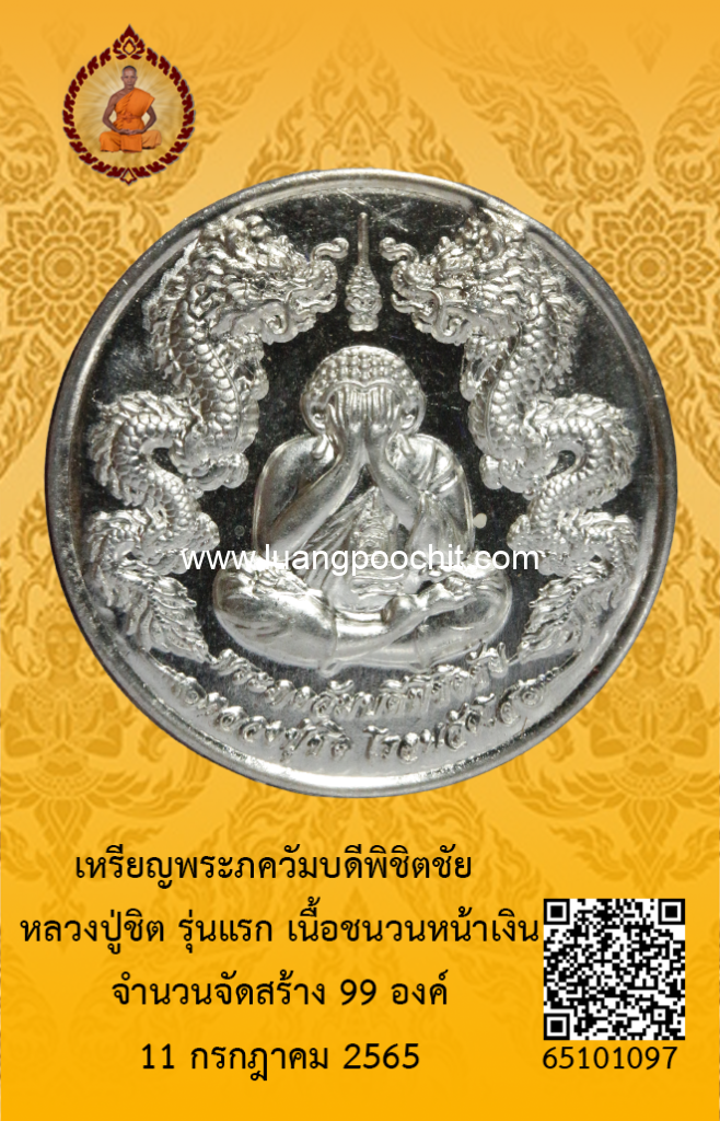 ชื่อพระ : เหรียญพระภควัมบดีพิชิตชัย หลวงปู่ชิต รุ่นแรก เนื้อชนวนหน้าเงิน วัดบ้านคำระหงษ์ จ.อุบลราชธานี