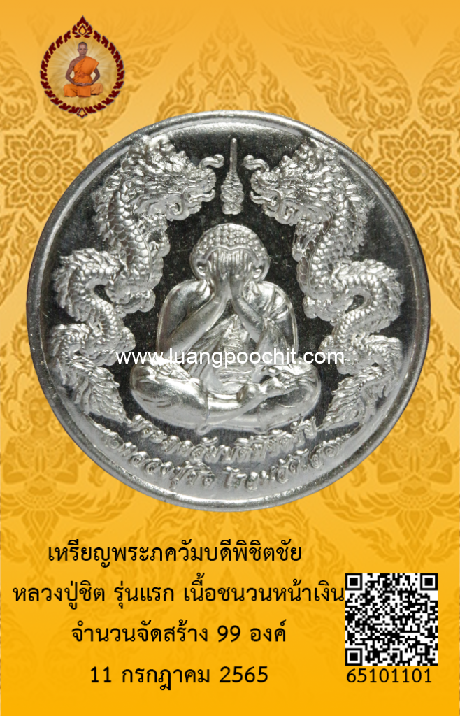 ชื่อพระ : เหรียญพระภควัมบดีพิชิตชัย หลวงปู่ชิต รุ่นแรก เนื้อชนวนหน้าเงิน วัดบ้านคำระหงษ์ จ.อุบลราชธานี