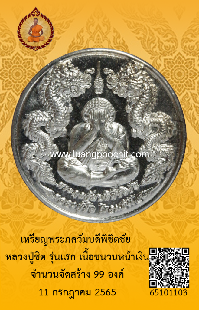 ชื่อพระ : เหรียญพระภควัมบดีพิชิตชัย หลวงปู่ชิต รุ่นแรก เนื้อชนวนหน้าเงิน วัดบ้านคำระหงษ์ จ.อุบลราชธานี