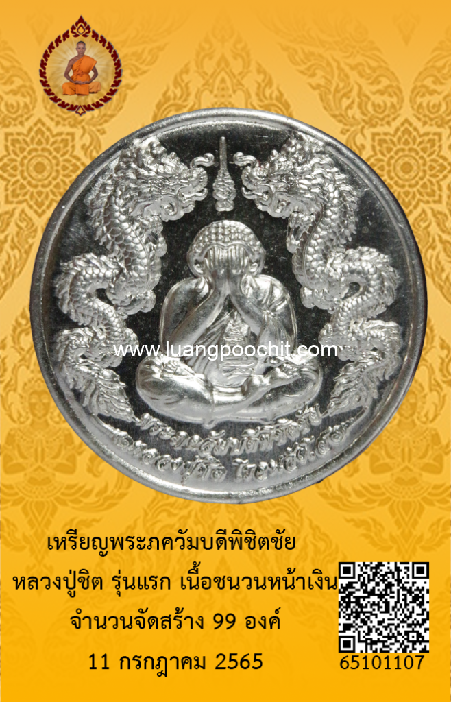 ชื่อพระ : เหรียญพระภควัมบดีพิชิตชัย หลวงปู่ชิต รุ่นแรก เนื้อชนวนหน้าเงิน วัดบ้านคำระหงษ์ จ.อุบลราชธานี