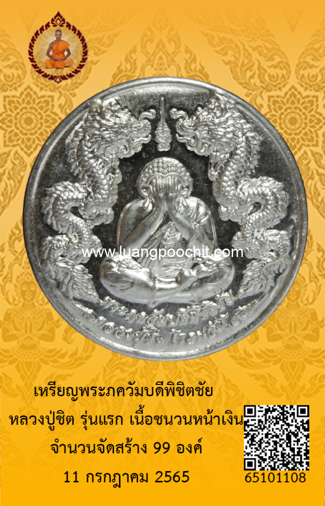 ชื่อพระ : เหรียญพระภควัมบดีพิชิตชัย หลวงปู่ชิต รุ่นแรก เนื้อชนวนหน้าเงิน วัดบ้านคำระหงษ์ จ.อุบลราชธานี