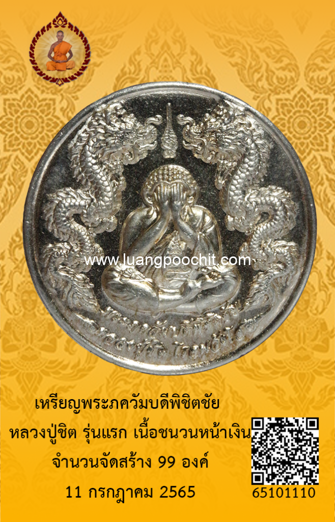 ชื่อพระ : เหรียญพระภควัมบดีพิชิตชัย หลวงปู่ชิต รุ่นแรก เนื้อชนวนหน้าเงิน วัดบ้านคำระหงษ์ จ.อุบลราชธานี