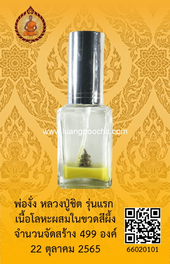ชื่อพระ : พ่องั่ง หลวงปู่ชิต รุ่นแรก เนื้อโลหะผสมในขวดสีผึ้ง วัดบ้านคำระหงษ์ จ.อุบลราชธานี