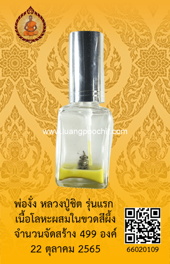 ชื่อพระ : พ่องั่ง หลวงปู่ชิต รุ่นแรก เนื้อโลหะผสมในขวดสีผึ้ง วัดบ้านคำระหงษ์ จ.อุบลราชธานี
