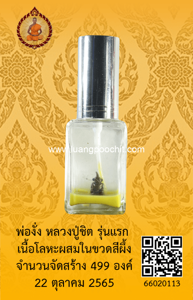 ชื่อพระ : พ่องั่ง หลวงปู่ชิต รุ่นแรก เนื้อโลหะผสมในขวดสีผึ้ง วัดบ้านคำระหงษ์ จ.อุบลราชธานี