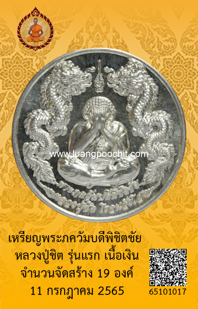 ชื่อพระ : เหรียญพระภควัมบดีพิชิตชัย หลวงปู่ชิต รุ่นแรก เนื้อเงิน วัดบ้านคำระหงษ์ จ.อุบลราชธานี
