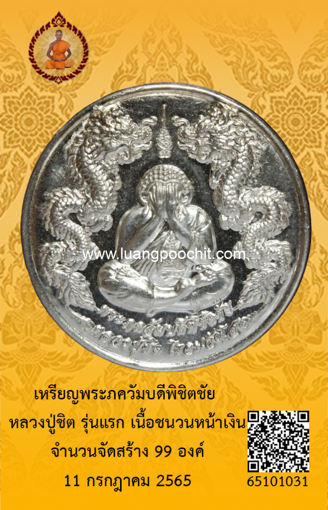 ชื่อพระ : เหรียญพระภควัมบดีพิชิตชัย หลวงปู่ชิต รุ่นแรก เนื้อชนวนหน้าเงิน วัดบ้านคำระหงษ์ จ.อุบลราชธานี