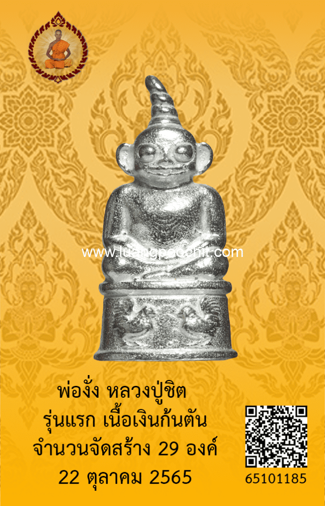 ชื่อพระ : พ่องั่ง หลวงปู่ชิต รุ่นแรก เนื้อเงินก้นตัน วัดบ้านคำระหงษ์ จ.อุบลราชธานี
