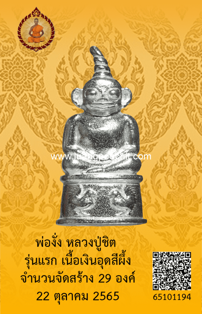 ชื่อพระ : พ่องั่ง หลวงปู่ชิต รุ่นแรก เนื้อเงินอุดสีผึ้ง วัดบ้านคำระหงษ์ จ.อุบลราชธานี