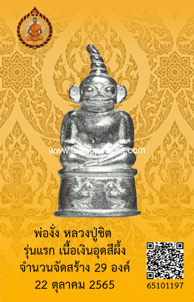 ชื่อพระ : พ่องั่ง หลวงปู่ชิต รุ่นแรก เนื้อเงินอุดสีผึ้ง วัดบ้านคำระหงษ์ จ.อุบลราชธานี
