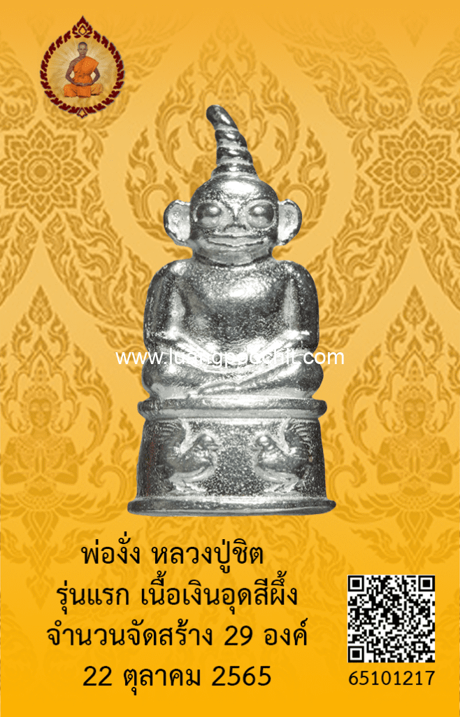 ชื่อพระ : พ่องั่ง หลวงปู่ชิต รุ่นแรก เนื้อเงินอุดสีผึ้ง วัดบ้านคำระหงษ์ จ.อุบลราชธานี